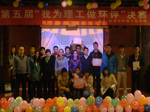 经过相关专业老师赛前培训及初赛评选,共有六支参赛队伍进入决赛。参赛者通过赛前对校园环境的调查研究,制作翔实的环评报告,以PPT的形式向评委与观众展示,并针对调查过程中发现的环境问题提出自己的独特见解与解决方案。评委从不同角度点评报告内容并就其中的不足之处提出质疑,参赛者认真回答。第一支参赛队伍“绿簇队”就固体废弃物污染与噪声污染等方面研究并做了相关问卷调查,提出改善方案。第三支“小广告终结者队”针对校园“牛皮癣”问题,调查各餐厅门口、宿舍楼、废弃建筑物及公共场所等,对广告占地面积做了数据统计与分析,并进行清除小广告行动。部分同学围绕水污染、校园水环境等问题实地调查取样,并对水质分析、总结,提出关于节水、处理水污染问题的可行方案。同时,部分同学针对宿舍楼下垃圾回收利用、垃圾桶摆放不合理问题制定美化方案并回答评委关于垃圾后期处理的问题。经过团队作品展示选、选手互评、及评委老师提问、环保节目展示四个环节后,“小广告终结者队”获得此次活动一等奖。