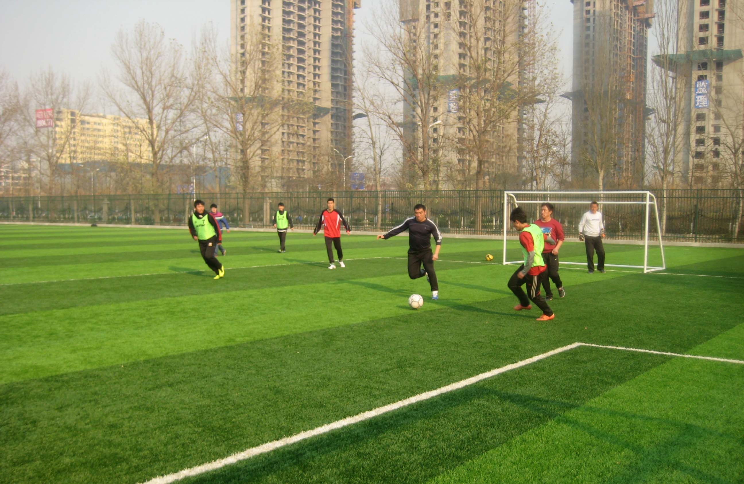 此次决赛共有三支队伍晋级,此场比赛是决赛第一场,由亚恒大队对战体院教工队。天气虽然寒冷,两支队伍热情却很高涨。在比赛还未开始之时,两支队伍就早早地来到了比赛场地进行着他们的赛前准备活动。