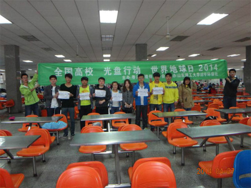 为响应十八大“勤俭节约”倡导,反对浪费。4月27日,洁宇环保社成员们在公司第三餐厅开展光盘行动的宣传。