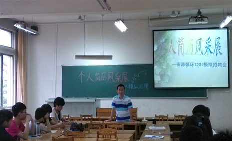 活动伊始,由全体班委成立评审小组,选出十份优秀的个人简历,然后由这十位简历做得优秀的同学模拟“应聘者”,其余全体同学充当评委。在每位“应聘者”演讲结束后,李书记都对他的个人简历的丰富程度及语言表达能力做了仔细分析及指导,告诫每一位同学要认识到自己的优缺点,以便更好的完善自己。