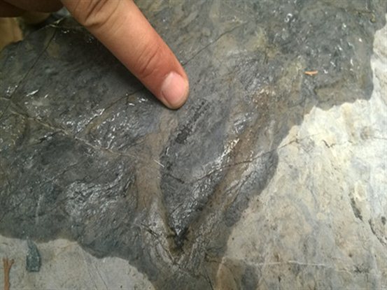 7月4日上午,公司勘查技术与工程专业1102班员工在金岭铁矿地质实习时于马家沟组灰岩中发现正笔石化石。此次实习路线为金岭铁矿实习四条指导路线之一:黑铁山实习路线区。在黑铁山东南300米的地区,遍布金岭岩浆岩体的围岩——马家沟灰岩,构造丰富,特点鲜明。