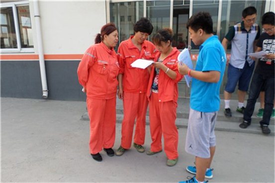 上午,实践团成员来到矿区生活区,同学们抓住矿工吃饭饭空期间人流高峰期的难得时机开展矿区安全生产宣传活动。一部分同学们通过对饭后的工人发放单页讲解安全生产常识的形式宣传矿区安全生产知识,同学们还不时的向工人们了解了些该铁矿石开采方面的情况。另一部分同学则开展了题为“矿区安全生产”的问卷调查,同学们在认真的一对一问卷调查之余不忘虚心地向来自不同岗位的矿工请教,并与他们一同探讨矿区安全生产的相关问题。
