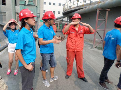 山东黄金盛大矿业公司杨总经理和团队指导老师一起商量团队实践安排事宜。随后,公司环保安全部负责人对团队实习做矿企安全培训工作。团队成员认真听取矿工培训、车间培训和班组培训等安全工作,为实践实习打下良好基础。下午,身着蓝衣佩戴红色安全帽的11名队员进选矿车间参观实习。在矿厂资深工人的带领下,实践团了解与认识一系列选矿安全设备。团队分别学习了锤式破碎机、烘干机、球磨机、分级机、磁选机、皮带输送机等大型选矿设备。“使用这些机器不但需要良好的理论知识水平,手动操作能力更尤为关键”“磨球机是物料破碎以后再粉碎的关键设备”,他微笑着和队员交流。在参观实习中,团队人员认真对待,就一些好奇问题和车间工人展开讨论。接近尾声时,带队人又细心地分析了精矿和尾矿的处理问题,实践队员受益匪浅。