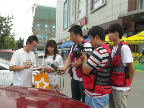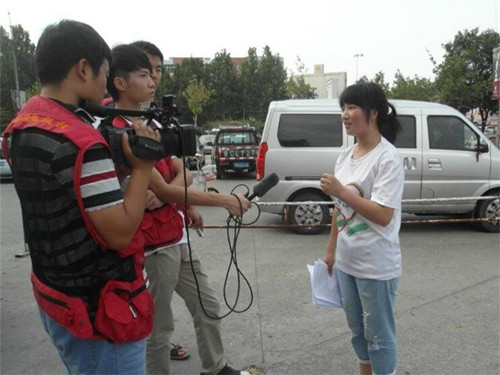 下午三时二十分,广电局记者下车后,与实践团队员热情握手,并表示愿意与实践团携手,共同扩大宣传,保护环境。在问卷调查过程中,记者采访了一位正在填调查问卷的市民,记者问道:“你觉得老员工暑假不回家,而是通过社会实践的方式,开展环保公益活动,你有什么看法?”市民表示高度赞同这种公益活动,并指出目前临淄最大的污染就是汽车尾气的排放,并对实践团宣传的节能减排小妙招连竖大拇指。为协助实践团更好,更快,更有力地宣传,记者访问了队长一些有关团队为什么要开展这项社会实践,实践过程遇到了什么样的困难,有什么样的感触等一系列的问题。