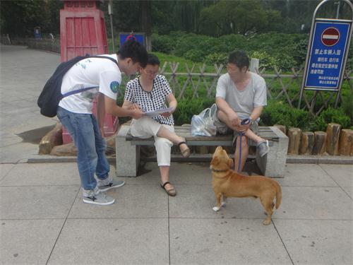 博山人民公园环境优美,人山人海,人民的娱乐活动众多,无论在环境角度还是在调研的便利性上来看,对实践团队员来说,都是一种优越,一位附近居民主动问起我们的活动主题,并填写水质调查问卷,他指出:“博山区最大的污染源自小吃摊和烧烤点产生的烟气,白天空气质量状况还可以,一到晚上六点以后,随烧烤摊点的增多,空气污染自然显示出来,并且这种状况依然持续,情况不容乐观。”有位居民对实践团的环保宣传活动给以的赞扬,并希望此类活动可以不断开展。