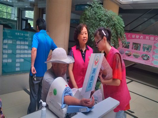 7月23日早7点半,慈善义工调研团8名队员到达市中心医院,“仁爱使者”负责人接待了调研团。