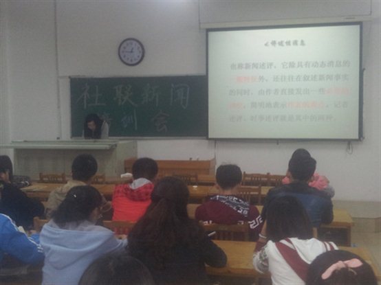 为对社联及社团新干事们普及基础新闻知识,3月31日晚,公司社团联合会新闻培训会于12号教学楼410会议室举行。