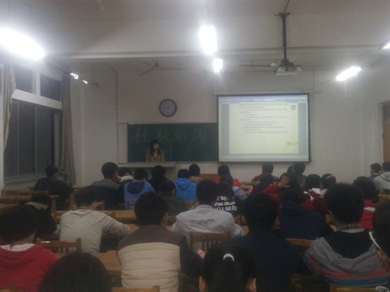 会上,王志新首先结合ppt向成员们总体普及新闻知识,针对新闻是什么?新闻应注意什么?怎么写新闻等几大问题进行讲解。张毓则就新闻采集、编写,发布过程中的细节问题向成员进行讲解,为使成员们更清楚的了解新闻投稿过程,张毓现场进入校内几大网站展示投稿过程,整个过程,成员们认真聆听,积极配合,学习热情高涨。