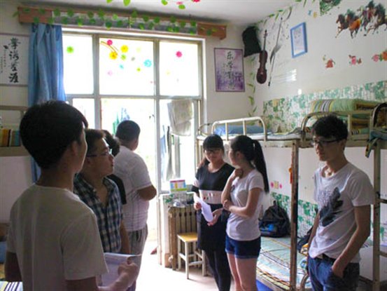 活动伊始,双方负责人分别带队,组织宿管委成员来到14号宿舍楼和16号宿舍楼进行随机访问。对于被选中的宿舍,本宿舍相关负责人给大家介绍宿舍的文化理念和起初的设计构思,到访人员针对宿舍体现的文化氛围,饰品的摆放等诸多细节展开详细的讨论。对于到访人员的相关问题,负责介绍的员工也逐一作出解答。随后,宿管委的成员就相关宿舍提出建议和意见,双方互相学习,相互借鉴,将一些优秀的设计思路进行整合并记录。寻访期间也不时涌现出一些颇具亮点的设计。宿舍文化照片(墙)、定期更新的图书角以及颇具象征意义的兰花等盆栽令到访人员豁然开朗,诸多具有文化内涵的设计和实物的整理放置也让到访成员受益匪浅。