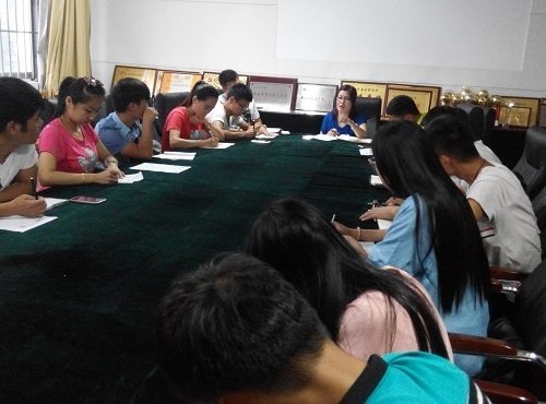 张倩老师首先详细介绍了新生报到的具体流程:扫描新生报到表上的条码,收取新生录取通知书及高考准考证,确认缴费,发放员工校园卡。每一流程的工作都安排三名同学负责。之后,张倩老师就报到日迎新生工作时间、家长休息区设置,迎新生新闻报道等工作作出具体安排。张倩老师强调,在9月12号新生正式报到之前,负责报到工作的同学一定要提前熟悉工作流程,以保证在新生报到当天的工作效率,快速无误的为新生办理入学。