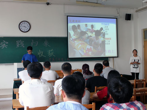 为深入落实公司党委精神,不断推进院团支部创新争优工作的开展,2015年暑期我院顺利开展了老员工文化,科技,卫生,“三下乡”暑期社会实践活动。新学期伊始,为将社会实践中优秀团队的成果展示出来与其他团队分享,让各团队有更好的机会互相交流学习,9月17日下午,公司10支社会实践团于12号教学楼406教室参加了由实践部主办的“实践归来话收获”座谈会,团总支相关负责人张倩、王寿朋老师参加。