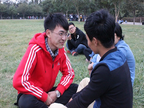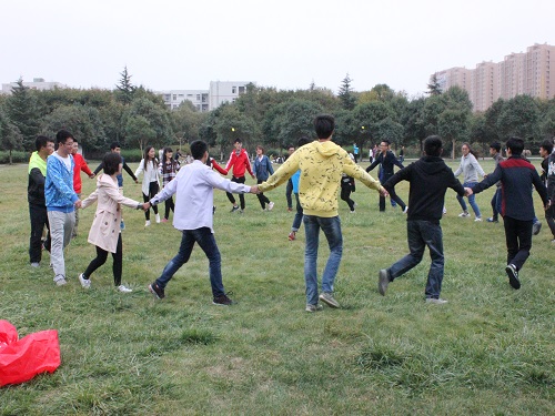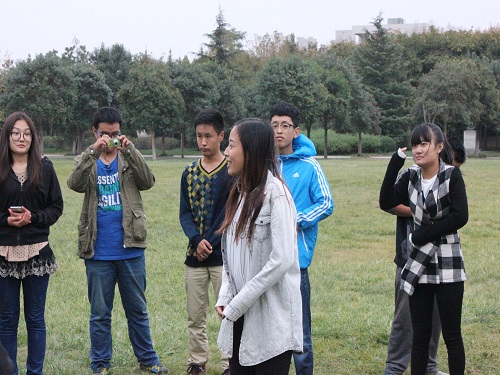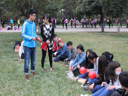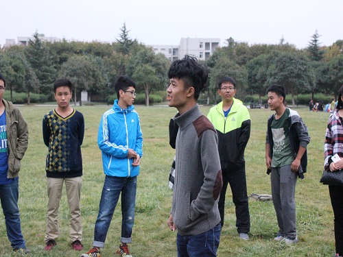 在完成了这些之后,会员们跟随社团骨干来到了逸夫图书馆南草坪。在这里,洁宇环保社与青青环保社联合举办会员活动。