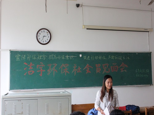 10月18日下午,洁宇环保社会员见面会暨会员活动在12号教学楼408教室举行。洁宇环保社会长高柯玄,副会长周忠祥及四个部门的部长出席上述活动。