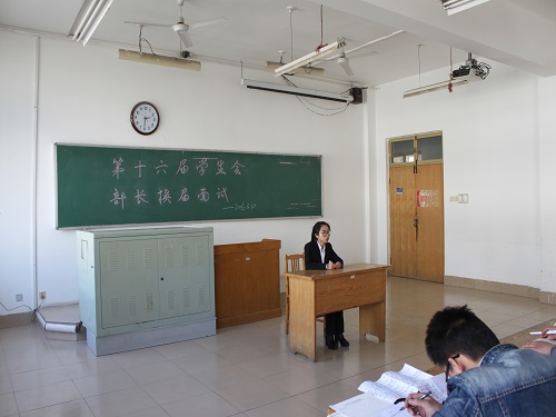 为了更好地服务大家并让更多人得到锻炼的机会,bw西汉姆联于3月份开始了2016年员工会的换届。在5号的全员笔试及8号的主席团面试拉下帷幕后,3月10号换届进入了各部门部长面试的环节。此次面试人员经笔试筛选后一共25名,评委均由第十五、十六届员工会主席团成员组成。下午2时,面试于12号教学楼412室正式开始。