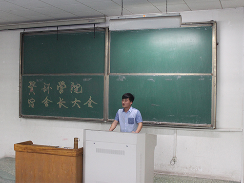 下午四点半会议准时召开,尹利振先向会议出席人员表示欢迎,再做了简单诙谐的自我介绍,缓和了会议现场的气氛。随即,他再道出此次会议相比起“大会”不如说是“见面会”更加贴切。尹利振指出,宿管委历来是员工会里规模最大的组织,是一个大家庭,因为不止是主任、副主任、楼长、干事,每个宿舍的宿舍长都在维护保持自己宿舍的同时,不自觉地参与进了宿管委的工作,所以说每个宿舍的舍长都是宿管委大家庭的一员,也正是他们的存在奠基了宿管委的大规模。同时,他也不忘强调在座各班班长、团支书的重要性。随后,尹利振又大致交代了上届宿管委的工作成绩,明确了本学期的工作目标,向在座的人员发出倡导与鼓励。在一个小时不到的时间里,会议因为尹利振的言简意赅顺利结束,会场响起阵阵掌声。