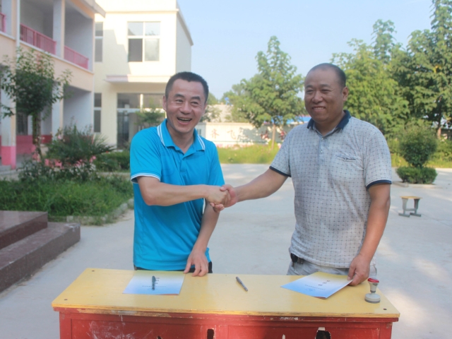 下午三点,筑梦青年团迎来了第一批客人,憨寺小学董事长李立国、曹庄小学董事长王翠花以及公司党总支副书记李栋祥,他们将在憨寺小学进行关于bw西汉姆联社会实践基地的签约仪式。董事长李立国对实践队员的到来表示欢迎,筑梦青年团团长葛通表示将努力完成实践任务。李书记给予实践项目活动一系列的指导。在鼓掌声中,双方签约。
