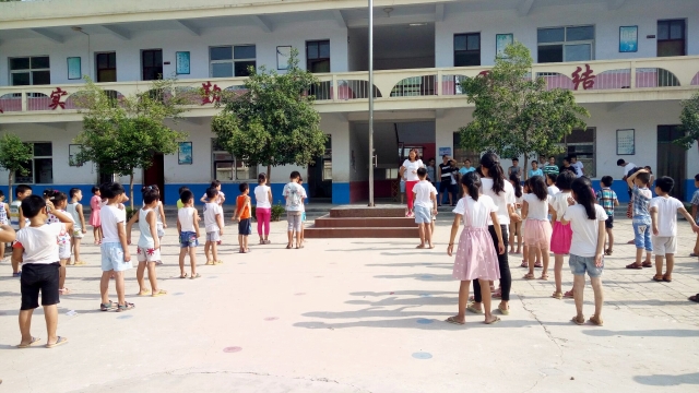 四名经过筑梦青年团队长许伟航指导的曹庄小学员工在进行曲中护送国旗走到旗杆下。伴随着庄严的国歌,五星红旗在夏日的阳光下冉冉升起。筑梦青年团成员与曹庄小学师生认真行注目礼并跟唱国歌。