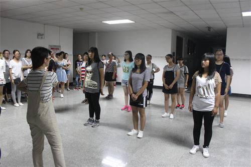 为了迎接本学期的健美操比赛,公司员工会文艺部遵循自愿报名的原则,向16级新生征集新人以参加比赛,并于9月8日晚,在公司12号教学楼五楼北大厅,组织16级新生进行健美操选拔。