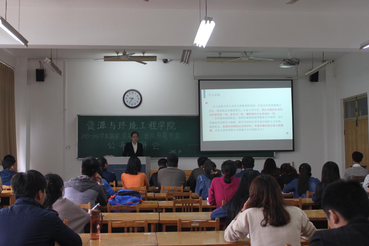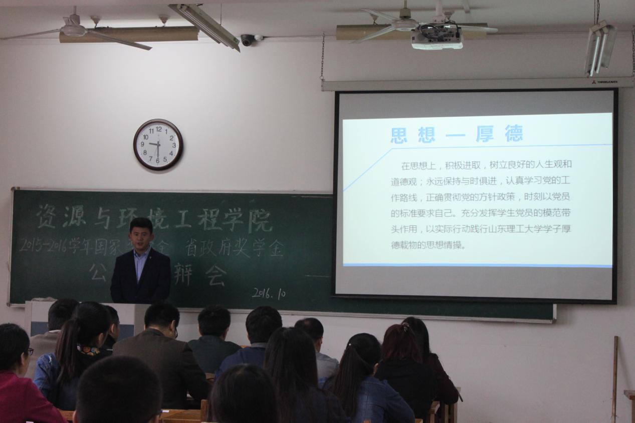会议伊始,李栋祥简单介绍了评选委员会组成,针对国家奖学金、省政府奖学金的参评条件、评选办法等作了简要介绍。为确保评选的公平、公正、公开,本次评选答辩分为候选人自我展示,评选委员会现场打分,统计小组统计得分,现场宣读结果四个环节。
