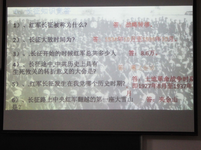此次团日活动形式多样,内容丰富,除了传统主题班会外,还融入知识竞赛、答辩、观看红色经典电影等元素。各团支部采用自己独具特色的方式将对于“长征精神”的理解进行完美的诠释。采矿1602团支部以PPT讲解的形式,对红军长征精神进行宣讲。随后通过《十送红军》、《长征的由来》等长征红曲和红色主题电影,介绍了长征中优秀老兵的感人事迹,讴歌了老一辈红军不畏艰难、奋勇直前的大无畏革命精神。勘查1601、1602团支部,通过知识竞赛、长征故事宣讲让同学们对于红军长征有了更深入的了解。
