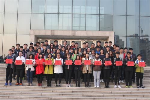16日下午,员工会团支部成员代表手持“资环学子忆党史,青春献礼党代会”的宣传标语在图书馆南侧合影拍照留念,共同祝愿公司第三次党代会的顺利召开。