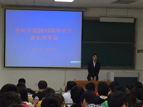 田经理在会议上表示,大家要放平心态,认清形势,抓住机会,尽快就业。在简要介绍今年的就业形式后,田经理以“什么样的工作才是一个好工作”开题,从认清就业形式、就业方向、面试技巧、工作方法等方面方面对就业情况做了详细指导。当谈到就业形式时,他以神华集团的浮沉经历为例告诉毕业生,“只有倒闭的企业,没有倒闭的行业”,虽然如今矿业形式普遍低迷,但是矿产行业不会就此消失,国民经济的发展需要我们行业的贡献。与此同时,田经理结合个人就业经历,鼓励大家对自己的专业保持信心。随后,他向毕业生介绍了矿产行业的多种就业方向,并就面试问题传授相关的技巧,并告诫已经就业的毕业生在工作岗位上要多动手、动脑,鼓励他们要放平心态、放低身价,找到适合自己的的工作。