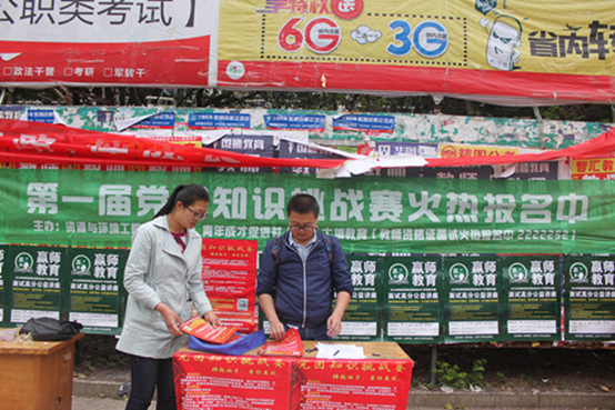为提高团员对党认识,引导团员更好听党话、跟党走,更加自觉向党中央看齐。4月19日中午,公司青年成才促进社在西校区各餐厅门口举办“一学一做”之党团知识挑战赛宣传活动。