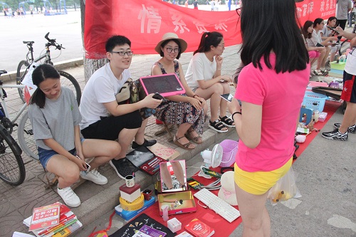 为了让大四毕业生的闲置物品得到再利用,给同学们创造一个社会实践的机会,自6月20日下午开始,公司宿管委联合权益部在第四体育场的篮球场举办跳蚤市场。同学们在道路旁边摆卖自己的“宝贝们”。小小的跳蚤市场,里面却是包罗万象,应有尽有,吸引了不少人前来淘宝。