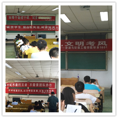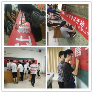 在各科考试之前,各班级在考场悬挂有关诚信考试的签名条幅,以警醒大家拒绝作弊,诚信应答。考试不仅是知识技能的测试,更是人格品行的测试,分数固然重要,但考风考纪更为重要,通过悬挂诚信条幅,号召同学们在考试中要端正态度,严肃考纪,实现成绩和人格的双丰收。