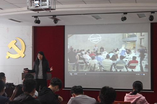 在第二、第三阶段,付诗茜介绍了中国青年精英基金会和郑志刚奖学金的相关内容。接着,李孔锐向大家介绍了员工如何参与校园节能减排活动,如何推行高校节能,列举了北京林业大学、兰州大学、中国农业大学、鲁东大学的节能项目。向大家讲解了“如何将能耗换算成碳排放”。通过一个具体例子让同学们参与能耗与碳排放的转化的计算。