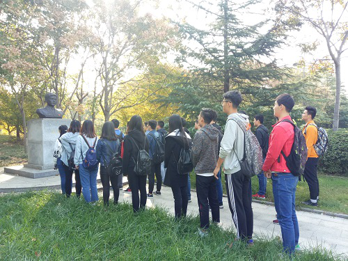 此次团日活动分为三个环节。活动伊始,同学们一起来到来到公司图书馆南侧的冯思广烈士纪念雕像前,举行对冯思广烈士的缅怀活动,同学们一起学习冯思广同志舍己为人的大无畏精神,并表达了对冯思广的悼念和敬佩之情。随后,同学们在图书馆草坪处集体合唱歌曲《国家》,以此来表达内心对祖国的热爱之情。紧接着,班级里部分同学精心准备了歌颂中国共产党光荣事迹的诗朗诵,同学们认真倾听,活动氛围十分浓厚。最后一个环节,大家一起开展了有关十九大的座谈会,会议开始前,有许多热爱书法的同学们积极主动地创作了“欢庆十九大”的主题黑板报,不仅切合了此次活动的主题,而且使此次团日活动内容更加丰富多彩。随后,班长赵博文具体介绍了会议的主题,并带领全班同学一同观看了中共十九大的回放,使同学们对十九大有了更加深刻更加全面的了解与认识。观看过后,大家积极踊跃发言,表达了自己对十九大的看法,同时也表达了对未来中国发展的希望。