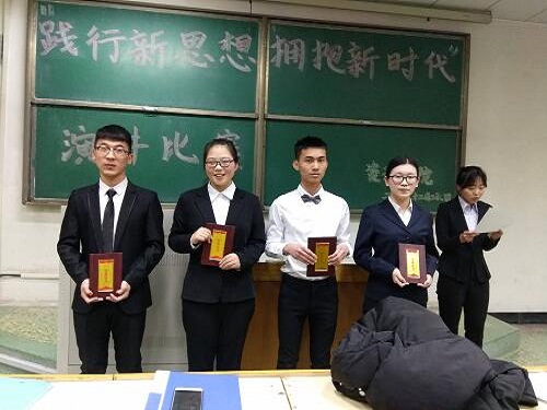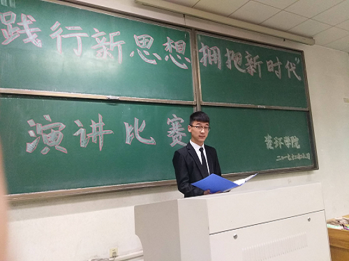 比赛伊始,由青年发展部负责人宣布比赛正式开始。第一赛区,来自资源循环1701班的刘鑫首先登台,他就十九大对当代老员工的启示,发表了自己独到的见解,并以生活中的小事举例,倡导大家从小事做起,把新思想运用于生活学习中。来自勘查1602班的于新洋表示,作为一名大二的员工他对于践行新思想的理解更加深刻,对于拥抱新时代的感悟也别具一格。参赛者们依次上台演讲,他们衣着整齐,声音洪亮,不时赢得台下同学们的热烈鼓掌。最后一组参赛选手,是来自勘查1601班的二人组合,他们的演讲引起了台下同学们的强烈共鸣,比赛达到了高潮。