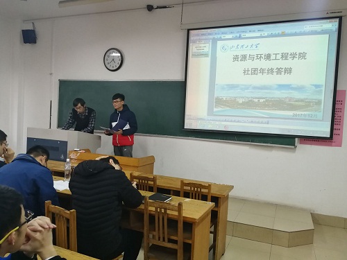 答辩会伊始,在王杰对此次答辩会活动和评优规则进行简要说明后,各社团按照顺序依次进行答辩。首先进行答辩的是来自洁宇环保社的副社长孙乙,他针对目前日常生活垃圾得不到分类的问题阐述了他们社团的解决方案,经过大量的校内和校外活动,从中培养了员工们的环保意识,激励更多人参与进环保中。紧接着,资环星行社的代表苏亚蒙从五有人才方面讲述了一年来社团所做的努力,也取得了一些不错的成绩,在总结的同时明确社团的责任和定位,及时做出调整以便更好的发展。随后,舒甜甜携MG绘图协会走上讲台,在规定时间内,她向大家讲述了社团的概况,前期的工作汇总以及对未来的展望。最后,矿业未来社的刘忠义以自信激昂的讲述方式把此次答辩会推向高潮,他从社团成立,现场还原社团竞赛,回顾金旅之旅,开展第二次走进实验室活动、安全培训、百万学子进矿山等方面向大家呈现了社团的初心与展望,赢得了大家的热烈掌声。