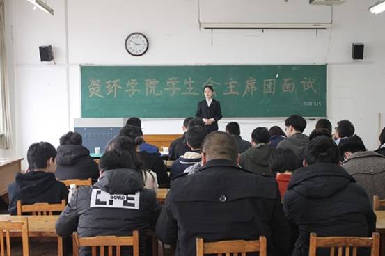 竞选伊始,由赵鹏详细介绍此次员工会主席团面试的流程,20位候选人在412教室等待竞选。竞选过程中,各竞选人依次阐述了自己对于所竞选职位的理解和进一步的打算,阐述完毕后,由评委进行提问,各竞选者按照自己的想法进行回答。随后评委团对于各竞选者的自我阐述以及日常能力等方面对其进行考察,综合笔试、面试成绩确定前十名候选人,再从其中择优选取七位作为主席团成员。经过评委的商讨,陈龙、刘晴等七人成功入选。