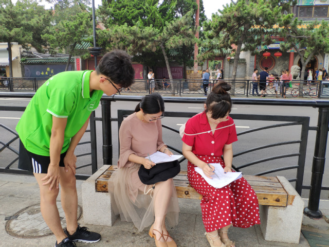 另外一件事发生在我们在济南与青岛期间的问卷调研过程中,炎炎夏日,我们团队一行人一起外出进行问卷调查,我们的第一个问题就是“你知不知道嗅辨员”,在所有的问卷填写中,没有一个人选择知道,甚至多数人都不了解恶臭污染是怎样。幸运的是,我们几个人还可以把自己了解到的向别人传达,向他人宣传,让更多人去了解这一份不可或缺、现今又无法机器代替的职业,让这份职业不断走进大众视野。我想,这也是我们实践的意义所在吧。