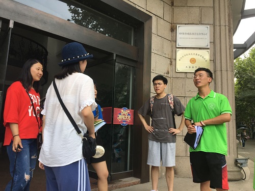 上午十点,实践团全体13名成员乘车到达了南浔古镇。古镇游客中心的工作人员热情的接待了实践团一行人。由于南浔景区办公室距离景区距离较远,实践团负责人于新洋及其中一名成员曹玉林前往办公室办理实践地接收证明,其余成员则在景区内开展调研活动。同在西塘时一样,仍然分为三个小组活动,每组一名女队员。其中一个小组就近找了游客接待中心的一名实习工作人员,她积极的配合实践团的工作,认真填写调查问卷,还亲切的与实践团成员聊天,像个大姐姐一样。在之后的走访调研中,虽然仍然有碰壁的时候,但实践团成员都有了经验,比起西塘时的调研,顺利了许多。