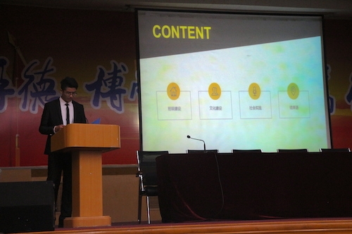此次表彰大会分为两个篇章。第一篇章是争做“五有”人才,勇当青年先锋。分为有社会责任、有创新精神、有专门知识、有实践能力、有健康身心五类,对一年来在这五方面做出突出成绩的先进集体和优秀个人进行了表彰。