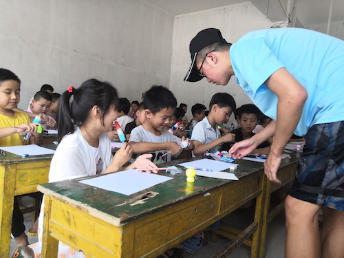 下午,实践团志愿者开始教孩子们绘画,为留守儿童上了一节简笔画课,志愿者帮助孩子们削好铅笔,分发纸张,并巧设“填图游戏”教学环节,寓教于乐,引导小朋友们在思考与设计中完成一幅幅个性的简笔画作品,并在最后为孩子们准备了文具分发。