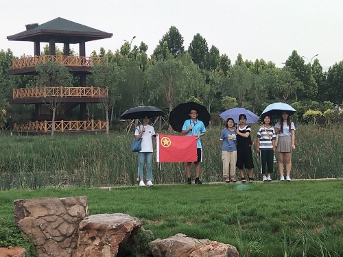 7月15日上午,τ研团社会实践团来到桓台马踏湖、乌河湿地公园进行取样调研活动。