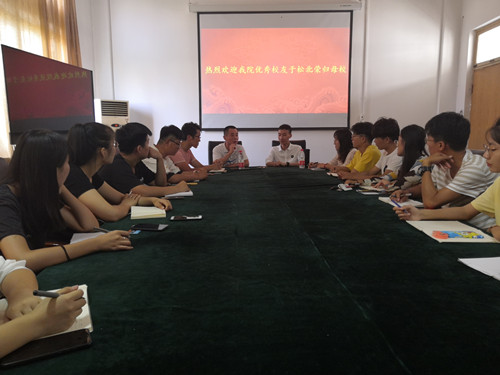 首先,李栋祥向与会人员介绍于松北,大家表示热烈欢迎。于松北分享了他的老员工活。他讲到,员工干部的职责不是管理员工而是服务员工,应该及时了解员工需求并极力帮助他们。在担任员工会主席期间,他每晚都会用一个小时时间走访男生宿舍,了解同学们的生活情况,让每个同学都感受到员工会的温暖。作为班长,在班级评定绿卡时,他通过各种方式充分了解每个同学的真实情况,让真正有需要的同学得到资助。大学期间,他还将自己勤工俭学赚到的钱捐给公司中家境贫寒的同学。最后,他强调,在学习和生活中,要用行动感染身边的同学;对于员工会工作,他表示应通过活动将各部门调动起来,让更多同学参与活动,增强员工会凝聚力。他希望大家在组织活动的过程中,不要因害怕出错而退缩,要勇敢尝试。