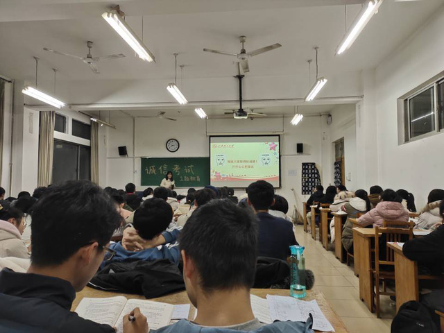 采矿专业的主题教育由公司李栋祥副书记组织,其他班级由2019级辅导员张媛老师主讲。主要包括三个方面:首先,生动形象、深入浅出的为大家讲解期末考试的重要性,引导大家高度重视期末考试,摒弃“60分万岁”的思想;然后,为大家介绍了一些期末考试的备考策略和考试技巧,希望大家形成班级、宿舍、小组等多级联动的备考机制,鼓舞大家踏实勤奋、积极备考;最后,在道德和纪律两个方面强调了考风考纪,要求大家诚信考试,守住诚信的道德底线,对自己也对他人负责。其间,不少同学也表达了对诚信考试的看法。大家纷纷表示,要迈好第一步,打好第一枪,取得专业知识学习和诚信做人的双丰收。