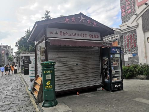 下午,队员去往被称为“中国红色旅游第一街”的遵义市红军街进行。它是遵义会议会址景区的不可分割的重要的组成部分,地处于红花岗区的老城,与风景秀丽的遵义公园毗邻相辅相成,熠熠生辉,常年有诸多游客慕名而来。占地面积广袤,房屋建筑全部为商业用房。所售商品多为遵义本地特有产品,如茅台酒,苗寨银饰,且随之应运而生的红色邮局、遵义酒文化博物馆等也为其添上了一股别样的韵味。