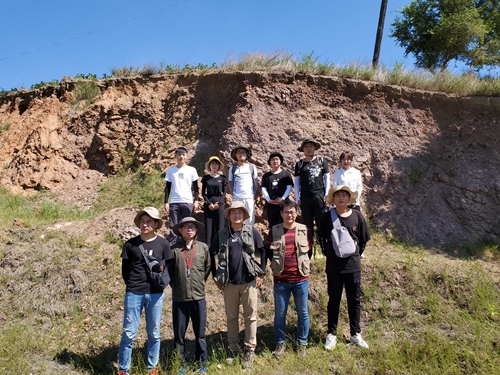 7月25日上午8点实践团从实习单位野外驻地出发,由带队老师张超和项目组成员带领前往鲍家屯村进行野外路线地质调查。本日实践团成员学习将实习基地所学的设计路线、定控制点和界线、采集样品、测量产状真正应用到地质工作当中。
