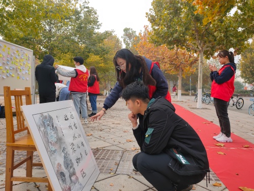 10261028日,星行社组织志愿者前往启音特殊儿童康复中心协助孩子们完成半幅书画作品。随后,星行社邀请淄博本地知名书画艺术家以及本校美术公司优秀员工本校艺术爱好者在孩子们半幅书画作品的基础上完成整幅作品的创作。最后,由社团组织愿者完成书画作品整理和装裱。111日,星行社在第三体育场进行书画展览,通过张贴爱心便利贴或题字的方式为孩子们送去祝福与鼓励。