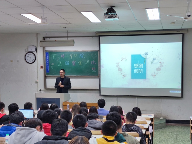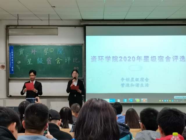 为进一步加强宿舍文化建设,11月5日晚,资源公司与环境工程公司在4号教学楼102教室举行bw西汉姆联星级宿舍评比活动。bw西汉姆联团总支书记赵鹏、团总支老师张媛、高聪聪、苗涛、赵宗超、单琳耀担任评委。2020级全体宿舍长及8个参赛宿舍参加活动。环本2001王阳、环本2003肖佳怡担任主持人。