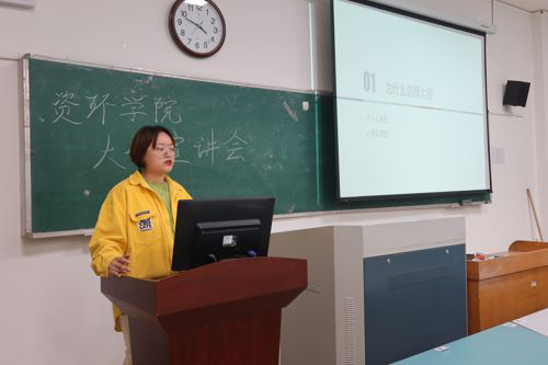 会议伊始,张安琪首先对“大创”的创业类型和学情总结进行简单介绍,并分别对大一、大二、大三关于“大创”的认知情况进行讲解。她提到,大学四年是一个循序渐进的过程。她结合自身经验,提醒员工在答辩时要对自己的项目充分了解,才能应对老师的提问,完成一场合格的答辩。马晓蔚上台发言,她首先根据自身的经历从个人和现实两方面阐述其参加“大创”的原因,并对其研究经历、研究思路进行进一步介绍。同时,她对参加“大创”的收获与感受进行补充分享,她说,项目的成功源于每个团队成员的辛勤付出,在比赛期间她与队员经历了许多有趣的事情,这是宝贵的人生经历。宣讲会在一片掌声中圆满结束。