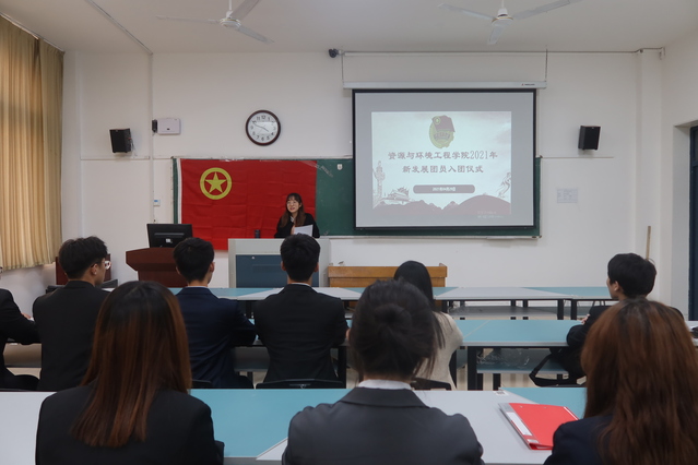 会议开展第一项,全体人员起立奏唱国歌。张媛说明举行入团仪式的意义,并宣读新发展团员名单。团总支老师依次为新发展团员颁发共青团徽章,带领新发展团员宣誓。