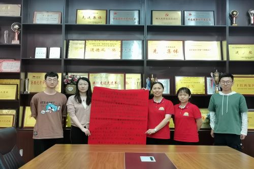 6月4日下午,启音特殊儿童康复中心教师李敬、刘文路代表公司向公司送来感谢信,对公司6年来一直指导资环星行社为自闭症儿童康复作出的贡献表示感谢。公司党委副书记秦伟伟,社团指导老师赵宗超,星行社负责人张新德在12号教学楼446室与到访教师进行交流。