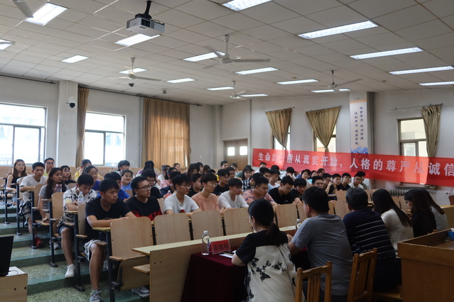矿物1801班全体员工进行了诚信宣誓。宣誓仪式后,李明院长讲话。他肯定了矿物1801班员工为班级建设做出的努力,就如何做好“无人监考”,进一步加强班级建设,他对全体员工提出两点要求:一要做到“慎独”,不触碰底线和红线,养成遵守纪律、遵守规则的良好习惯,“无人监考”应该比“有人监考”具有更大的约束性;二要学会主动学习,从“要我学”变为“我要学”。大学有更多的自由和独立的空间,因此更要充分发挥自己的学习潜能,建立自主学习的意识。