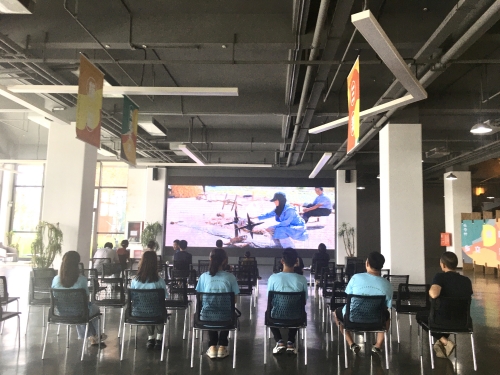 随后,司振华带领实践团成员来到朱家林农创园进行实地参观,司振华先从农创园的整体状况进行介绍,他指出朱家林农创园作为全国首个的田园综合体和全国农村创新创业典型园区,农创园以人才、科技、资本、政策要素作为保障,以培育孵化现代农业产业为核心进行发展。实践团成员在他的介绍之下,逐步深入了解现代农业、乡村旅游、创意设计、健康养生、电子商务、研学旅行产业的发展。最后,农创园中的负责人为其播放朱家林田园综合体宣传片,实践队成员在宣传片中感悟乡村振兴策略带来的巨大变化,负责人强调农创园争取早日实现实现产业振兴,把产业发展落到促进农民增收上来,全力以赴消除农村贫困,推动乡村生活富裕。